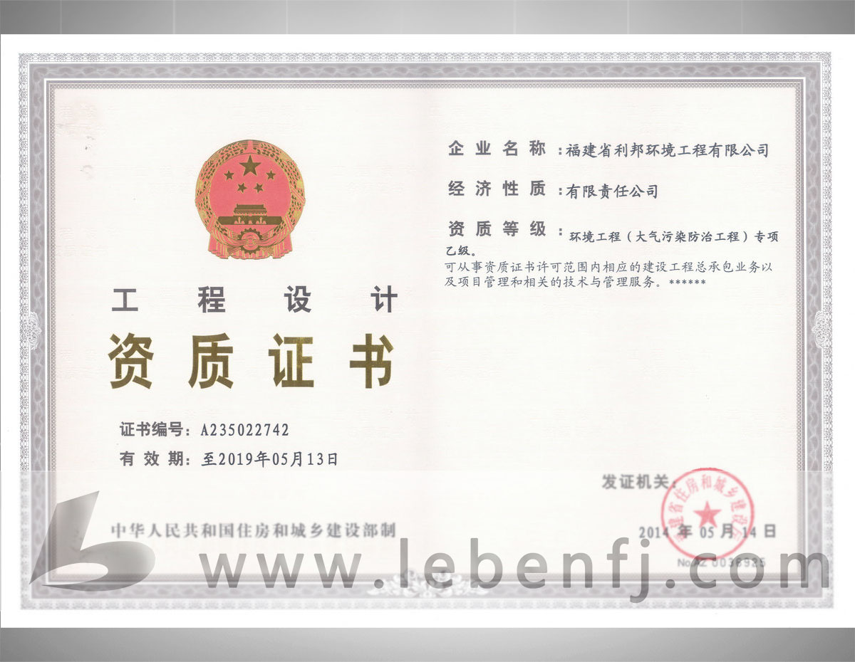 • 環(huán)境工程設計專項資質(乙級)